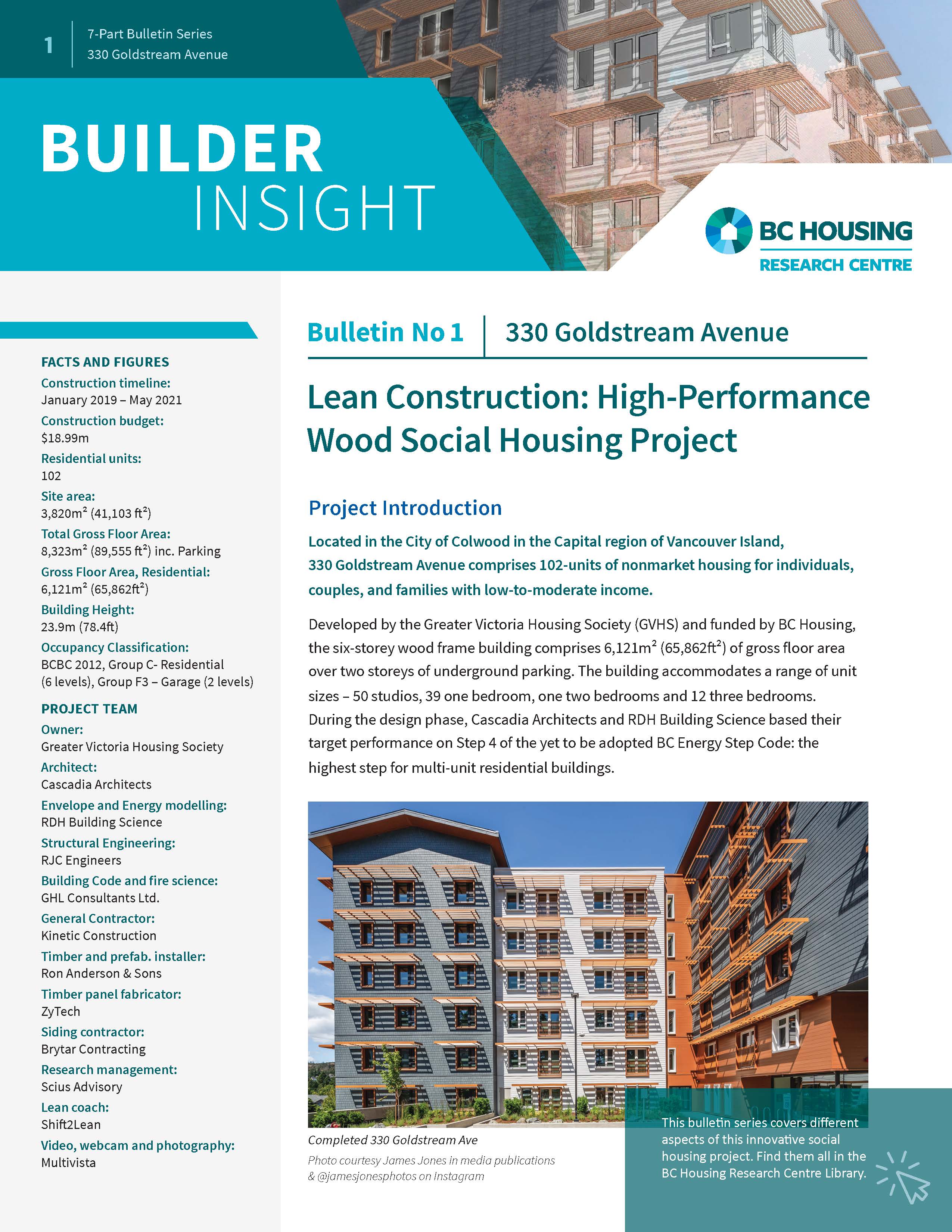 Builder Insight - Bulletin No. 1 - 330 Goldstream Avenue - Lean Construction: High-Performance Wood Social Housing Project